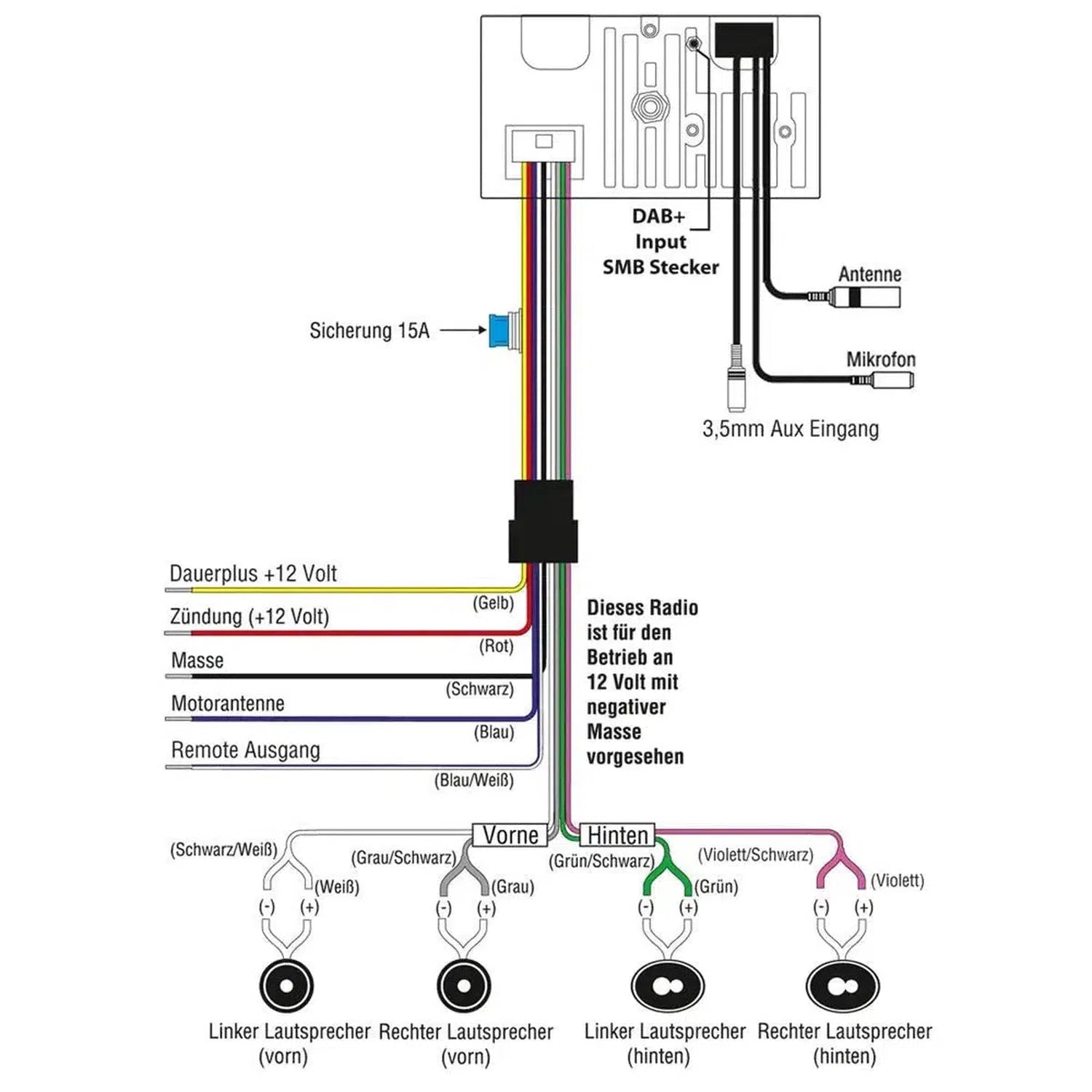 - Spannung: 10,5-14,4 Volt, DAB+ Empfang, SMB Antenneneingang.