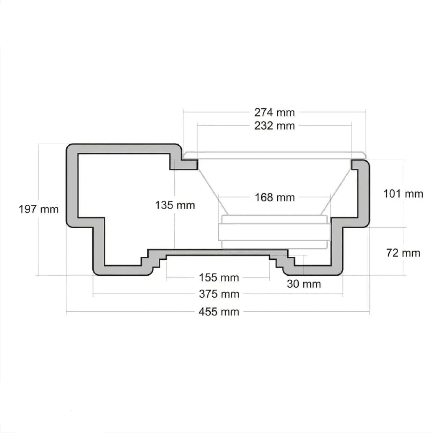 Der Masori G10-15RRM-IN-18" Subwoofer verfügt über eine Einbautiefe von 135 mm. Diese Tiefe ist entscheidend für die Montage in Fahrzeugen mit begrenztem Raumangebot, erlaubt jedoch gleichzeitig, den Subwoofer in eine Vielzahl von Gehäusetypen zu integrieren. Gerade bei der Installation in Limousinen oder sportlichen Fahrzeugen, wo der Laderaum begrenzt ist, ermöglicht diese Einbautiefe einen platzsparenden Einbau ohne Leistungseinbußen.
