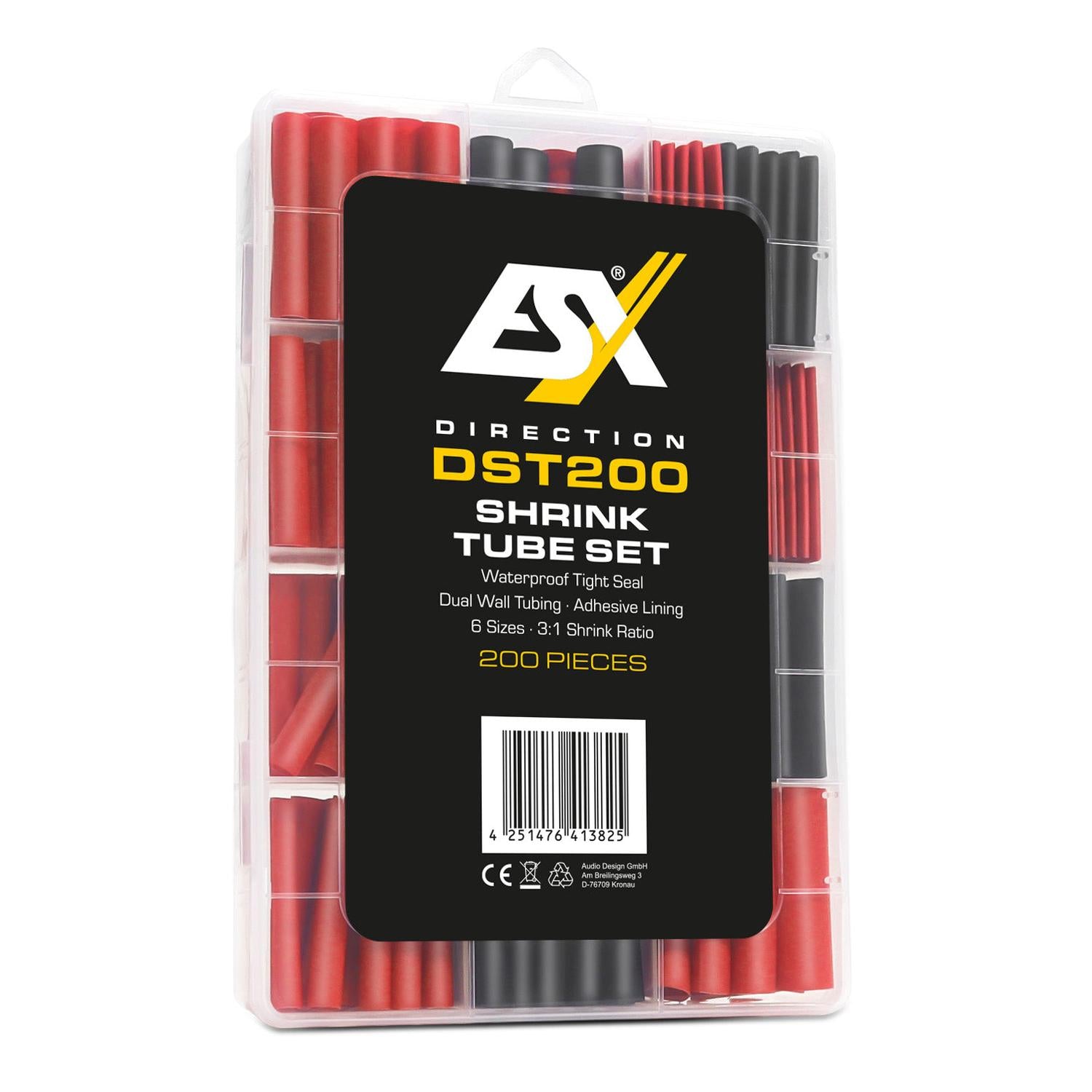 The DST200 heat shrink tubing from ESX provides you with a reliable solution for a clean finish of power and speaker cables. With a shrink ratio of 3:1, you can ensure that your cable connections look both secure and professional. The integrated adhesive ensures a reliable seal. The 200-piece set is available in various sizes and colors, such as red and black, offering versatile applications in your wiring projects. Whether for personal or professional use, the DST200 is a practical choice for all your cable needs.