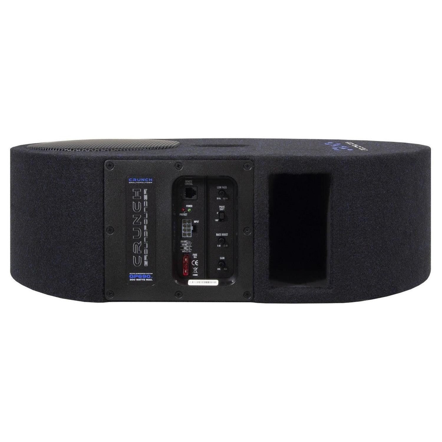 Der Crunch GP690V2 ist ein 8 Zoll Aktiv-Gehäusesubwoofer, der sich ideal für dein Auto-Audiosystem eignet. Mit einem Tiefpass-Filter von 50 bis 150 Hz und einem Bass Boost von 0 bis 12 dB kannst du den Bass individuell anpassen. Der Subwoofer bietet flexible Anschlussmöglichkeiten über Cinch- und Hochpegel-Eingänge sowie eine automatische Einschaltfunktion. Für eine optimale Basswiedergabe sorgt ein Phasenschalter und ein fixer Subsonic-Filter bei 25 Hz. Der GP690V2 wird von einem Class A/B Verstärker betrieben und liefert 150 Watt RMS sowie 300 Watt Maximalleistung. Eine Basspegel-Fernbedienung und abziehbare Anschlüsse erleichtern die Bedienung. Mit seinem kompakten Design und der Integration eines 15 x 23 cm (6 x 9") Subwoofers überzeugt er technisch und praktisch.