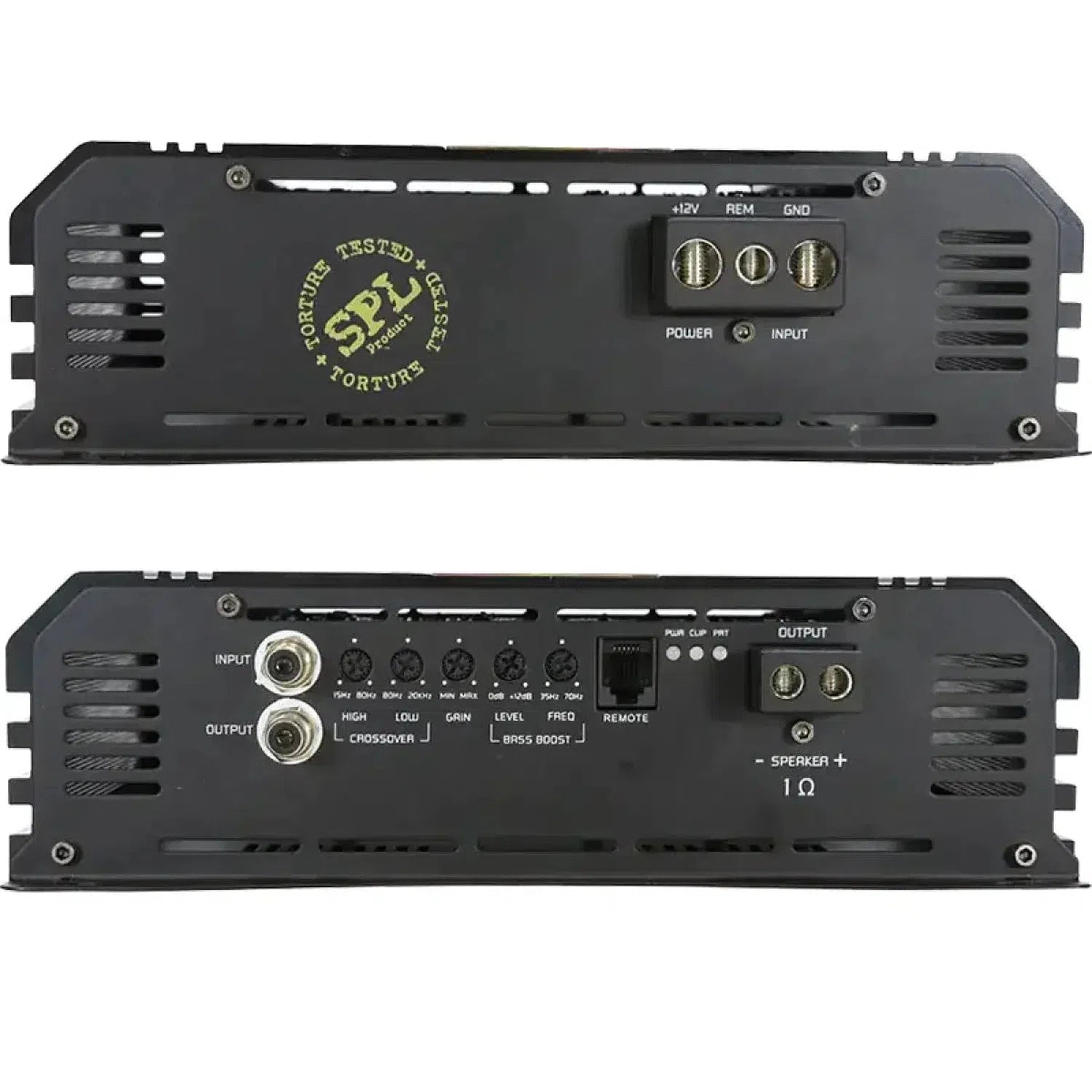 - 1-Kanal 2-Ohm stabiler Breitband SPL-Hochleistungsverstärker mit Class D Schaltung, integrierter Aktivweiche und Bass Boost