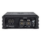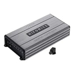 Aber klein heißt nicht dünn: Schon beim Auspacken merkt man, dass man es mit echten Zeus-Amps zu tun hat. Trotz der geringen Größe liegen die Modelle angenehm schwer in der Hand und vermitteln ein solides Gefühl in gewohnter Hifonics-Qualität. Geprägte Logo-Badges aus Aluminium, sorgfältig gefräste Modellnummern und raffinierte Endkappen aus Aluminiumguss vermitteln optisch eine einzigartige Symbiose aus Kraft und Eleganz, die von diesen Amps ausgeht.